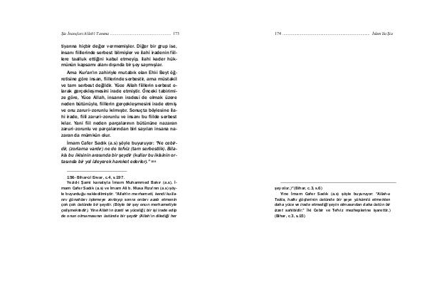 izzet sahibidir." İki Cebir ve Tefviz mezheplerine işarettir.)