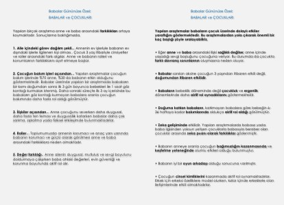 Yapılan birçok araştırma anne ve baba arasındaki farklılıkları ortaya