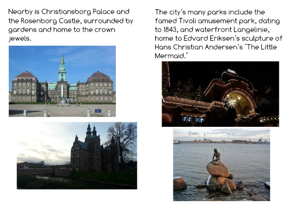 Nearby is Christiansborg Palace and the Rosenborg Castle, surrounded by gardens and home to the crown jewels.
