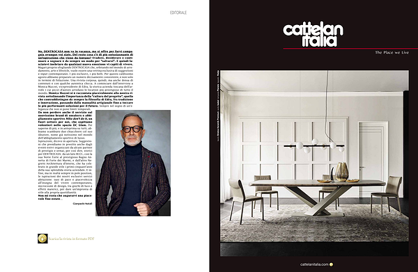 No , DENTROCASA non va in vacanza , ma si offre per farvi compagnia ovunque voi siate . Del resto cosa c ’ è di più entusiasmante di un ’ ispirazione che viene da lontano ? Evadere , desiderare e continuare a sognare è da sempre un modo per “ salvarsi ”. E quindi lasciatevi inebriare da qualsiasi nuova emozione vi capiti di vivere . Magari proprio sfogliando DENTROCASA che , orbitando nel mondo di arredamento , arte e lifestyle , vuole essere una vetrina esclusiva di suggestioni e input contemporanei . I più esclusivi , i più belli . Per questo caldissimo agosto abbiamo preparato un numero decisamente consistente , e non solo in termini di foliazione . Una rivista corposa , quindi , ma anche densa di contenuti e con qualche autentica chicca . A cominciare dall ’ intervista a Monica Mazzei , vicepresidente di Edra , la storica azienda toscana dell ’ arredo i cui pezzi d ’ autore arredano le location più prestigiose di tutto il mondo . Monica Mazzei si è raccontata piacevolmente alla nostra rivista sottolineando l ’ importanza della “ cultura del progetto ”, quella che contraddistingue da sempre la filosofia di Edra , fra tradizione e innovazione , passando dalla manualità artigianale fino a toccare le più performanti soluzioni per il futuro . Sempre nel segno di un ’ e- leganza che non si pone limiti temporali . Da non perdere anche il servizio sul nuovissimo brand di sneakers e abbigliamento sportivo Mike don ’ t do it , un fuori settore per noi , che ospitiamo volentieri nello spazio DC Glam . Per saperne di più , e in anteprima su tutti , abbiamo scambiato due chiacchiere col suo ideatore , nome già notissimo nel mondo dell ’ abbigliamento sportivo di lusso . Ispirazioni , dicevo in apertura . Suggestioni che prendiamo in prestito anche dagli eventi estivi organizzati da alcuni partner di prestigio e ormai , per così dire , storici per DENTROCASA : da un lato BI . CI ., con la sua Notte Forte al prestigioso Bagno Annetta di Forte dei Marmi , e dall ’ altro Negretti Architettura d ’ Interni , che ha celebrato in grande stile i primi cinquant ’ anni della sua splendida storia aziendale . E infine , ma in realtà sempre in pole position , le ispirazioni dei nostri esclusivi servizi abitazione : oasi di pace e piacevolezza all ’ insegna del vivere contemporaneo , microcosmi di design , tra giochi di luce e effetti materici , per dare un ’ impronta di stile alla propria quotidianità . Non mi resta che augurarvi una piacevole fine estate …