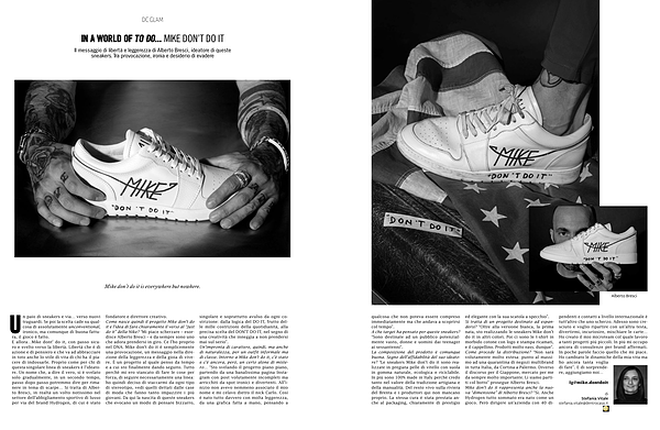 Alberto Bresci qualcosa che non poteva essere compreso immediatamente ma che andava a scoprirsi col tempo ”. A che target ha pensato per queste sneakers ? “ Sono destinate ad un pubblico potenzialmente vasto , donne e uomini dai teenager ai sessantenni ”. La composizione del prodotto è comunque buona . Segno dell ’ affidabilità del suo ideatore ? “ Le sneakers Mike don ’ t do it sono realizzate in pregiata pelle di vitello con suola in gomma naturale , ecologica e riciclabile . In più sono 100 % made in Italy perché credo tanto nel valore della tradizione artigiana e della manualità . Del resto vivo sulla riviera del Brenta e i produttori qui non mancano proprio . La stessa cura è stata prestata anche al packaging , chiaramente di prestigio ed elegante con la sua scatola a specchio ”. Si tratta di un progetto destinato ad espandersi ? “ Oltre alla versione bianca , la prima nata , sto realizzando le sneakers Mike don ’ t do it in altri colori . Poi ci sono le t-shirt in morbido cotone con logo e stampa ricamati , e il cappellino . Prodotti molto easy , dunque ”. Come procede la distribuzione ? “ Non sarà volutamente molto estesa : punto al massimo ad una quarantina di negozi multibrand in tutta Italia , da Cortina a Palermo . Diverso il discorso per il Giappone , mercato per me da sempre molto importante . Lì siamo partiti col botto ” prosegue Alberto Bresci . Mike don ’ t do it rappresenta anche la nuova “ dimensione ” di Alberto Bresci ? “ Sì . Anche Hydrogen tutto sommato era nato come un gioco . Però dirigere un ’ azienda con 40 dipendenti e contatti a livello internazionale è tutt ’ altro che uno scherzo . Adesso sono cresciuto e voglio ripartire con un ’ altra testa , divertirmi , incuriosire , mischiare le carte … Ho creato il mio microteam col quale lavoro a tanti progetti più piccoli . In più mi occupo ancora di consulenze per brand affermati . In poche parole faccio quello che mi piace . Ho cambiato le dinamiche della mia vita ma ho ancora tanta voglia di fare ”. E di sorprendere , aggiungiamo noi …