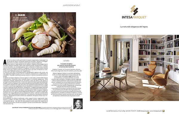 Agosto è un mese molto particolare in quanto rappresenta il passaggio tra un periodo di riposo e la grande ripresa di settembre . Durante la villeggiatura estiva si è soliti conoscere nuovi piatti , usanze e tradizioni . Questo mese vi voglio parlare di un vegetale , originario della maggior parte dei Paesi dell ’ Asia orientale , dalle mille proprietà anche terapeutiche : il daikon , ovvero una radice , un ravanello gigante , poco conosciuto in Italia sino a qualche anno fa , ma estremamente diffuso in Giappone . La forma è molto simile a quella della carota , ma il sapore è decisamente più forte e piccante . In botanica è conosciuto come Raphanus sativus var . longipinnatus . Si tratta di una radice morfologicamente paragonabile appunto alla carota , ma che raggiunge lunghezze pari a 20-35 centimetri e diametro di 5 o addirittura 10 centimetri . La polpa si presenta carnosa , mentre il sottile rivestimento esterno è lucido . Il daikon ( in lingua nipponica “ grossa radice ”) è una radice commestibile bianca comunemente conosciuta come ravanello bianco o ravanello giapponese . Nella tradizione orientale rappresenta un toccasana a tutti gli effetti e per questo è protagonista nell ’ alimentazione : è utilizzato soprattutto grattugiato per preparare insalate , ma il suo impiego è noto anche nella decorazione di piatti a base di sashimi . È inoltre sfruttato sia crudo che cotto , per la preparazione di minestre , zuppe e stufati e , viste la sua stagionalità e le sue proprietà , in commercio si trova anche essicato , ideale per brodi dall ’ effetto “ dimagrante ”. Il daikon grattugiato possiede inoltre la proprietà specifica di favorire la digestione di alimenti ricchi di grassi . Alla radice del daikon sono attribuite anche proprietà nello sciogliere i depositi di grasso in eccesso , però è anche leggermente ipotensivo e quindi è sempre importante che venga abbinato ad una componente salata , come per esempio della salsa di soia o dell ’ acidulato di umeboshi . È un alimento a bassissimo contenuto calorico : 100 grammi di radice forniscono solamente 90 kjoule ( 22kcal ), ed è ricco di vitamina C . Personalmente lo utilizzo moltissimo : nella zuppa di miso , leggermente sbollentato e condito con della salsa tahin e umeboshi , al forno , saltato in padella con qualche spezia … ma , dato che amo preparare anche piatti che stupiscano il palato dei più scettici , ho deciso di proporvi la mia ricetta delle finte “ capesante ” con maionese veg . la ricetta