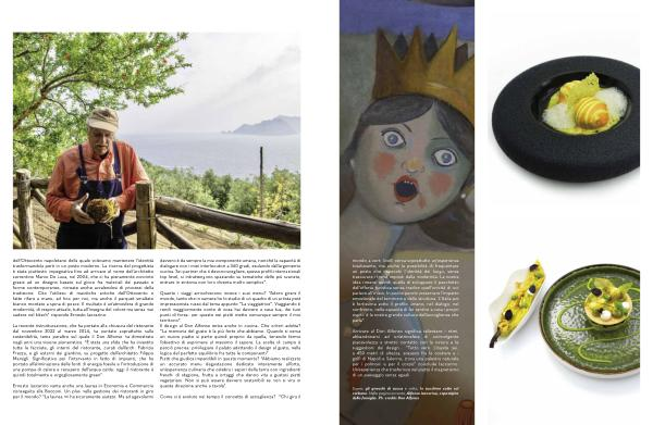 Arrivare al Don Alfonso significa rallentare i ritmi, abbandonarsi ad un’ atmosfera di coinvolgente piacevolezza a stretto contatto con la natura e le suggestioni del design...“ Tutto vero. L’ ospite qui, a 450 metri di altezza, sospeso fra le costiere e i golfi di Napoli e Salerno, trova una palestra naturale per i polmoni e per il corpo” conclude Iaccarino. Un’ esperienza che trasferisce nel piatto il magnetismo di un paesaggio senza eguali.