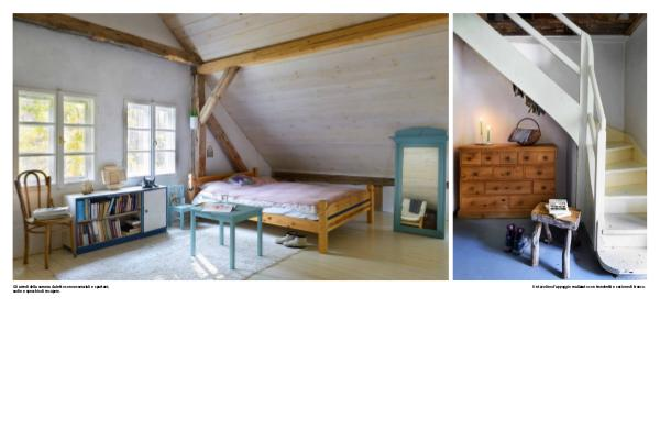Gli arredi della camera da letto sono essenziali e spartani; sedie e specchio di recupero.