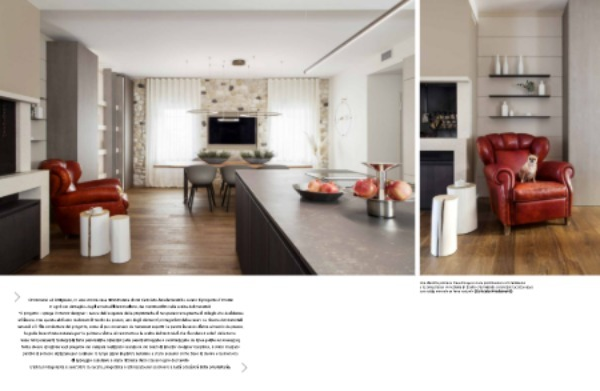 Ci troviamo ad Arzignano , in una storica casa ristrutturata di cui Cariolato Arredamenti ha curato il progetto d ’ interni in ogni suo dettaglio : dagli arredi all ’ illuminazione , dai controsoffitti alla scelta dei materiali . “ Il progetto - spiega l ’ interior designer - nasce dall ’ esigenza della proprietaria di recuperare una pianta di ciliegio che desiderava utilizzare . Con questa abbiamo realizzato il tavolo da pranzo , uno degli elementi protagonisti della casa ”. La ricerca dei materiali naturali è il filo conduttore del progetto , come si può osservare da numerosi aspetti : la parete in sasso dietro al tavolo da pranzo , la pelle invecchiata naturale per la poltrona vicina al caminetto e la scelta dei toni caldi che ricordano i colori delle terre . Sono tutti elementi materici di forte personalità , bilanciati alle pareti attrezzate e caratterizzate da linee pulite ed essenziali . Nella stessa direzione va il progetto del camino : realizzato su misura dal team di interior designer Cariolato , è stato studiato perché si potesse utilizzare per cucinare . Il lungo piano in pietra naturale è stato pensato come base di lavoro e la mensola di appoggio superiore è stata ricavata dallo stesso legno del tavolo . L ’ altra protagonista è senz ’ altro la cucina , progettata e attrezzata per assolvere a tutti i desideri della proprietaria .