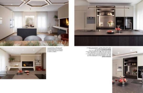 La cura dei dettagli ed i materiali naturali caratterizzano il progetto dell ’ abitazione . In questa immagine vediamo la zona pranzo e la cucina , un open space dove valorizzare al massimo la convivialità .