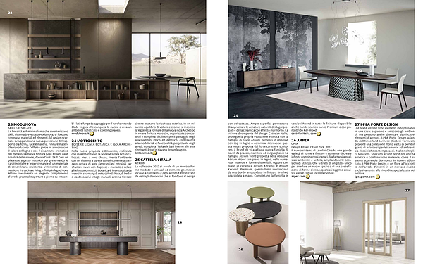 ATRIUM La collezione 2022 si avvale di un mix tra forme morbide e sensuali ed elementi geometrici incisivi a contrasto e ogni arredo è enfatizzato da dettagli decorativi che si fondono al design
