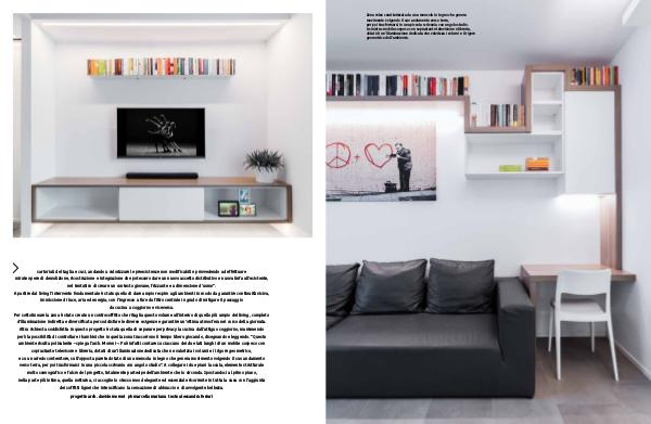 A sinistra: mobile sospeso con soprastante televisione e libreria,