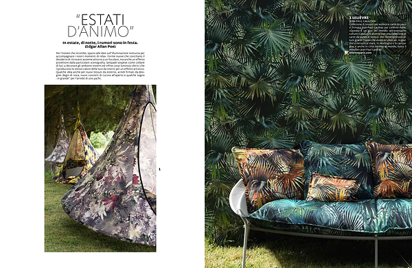 Per l ’ estate che incombe , spazio alle idee sull ’ illuminazione notturna per accompagnare i nostri momenti di relax . Forme nuove che conciliano il desiderio di ritrovarsi assieme attorno a un focolare , ma anche un effetto proiettore dalla particolare scenografia , lampade sospese come collane di luci a decorare gli ambienti esterni ed infine corpi luminosi sferici che riproducono lo stesso calore della luce da interni per un effetto artistico . Qualche idea anche per nuovi tessuti da esterno , arredi firmati da designer degni di nota , nuovi concetti di cucina all ’ aperto e qualche sogno “ in grande ” per l ’ arredo di uno yacht .