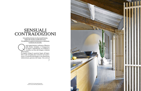 Particolare della cucina . L ’ isola è stata realizzata su disegno dello studio di architettura Archiplan ; la luce delle finestre , prive di tende e tapparelle , viene modulata da barriere frangisole in rovere , funzionali e decorative allo stesso tempo , che garantiscono la privacy e incorniciano le grandi aperture , anch ’ esse disegnate dallo studio .