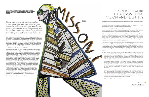 In which aspects do you feel a continuity with Missoni’ s history, and where do you let more of yourself shine through?“ I’ m one of those creatives who enjoy deeply understanding a brand, listening to the vibrations it gives off, grasping which elements might work at a given moment, and then finding the key: the right compromise that suits my vision while respecting the whole production ecosystem. It’ s not a selfreferential job, nor is it that of a pure artist.”