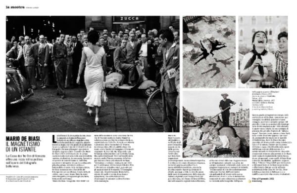 Questo grazie al magnetismo innato delle realizzazioni di De Biasi , romanziere per immagini , tra abilità , passione e tanto coraggio , anzi vero e proprio spregio del pericolo . Come in occasione del reportage sulla rivolta ungherese del 1956 ( durante la quale venne colpito da una scheggia di granata ) che gli valse l ’ epiteto di “ italiano pazzo ”. Racconti visivi , spesso a tinte forti , sulla scorta di un ’ arte appresa “ per caso ” da un manuale rinvenuto tra le macerie di Norimberga , dove De Biasi era stato deportato al lavoro coatto come radiotecnico . E poi c ’ è la natura , l ’ amore per la poesia di forme e segni , identificabile nelle opere dell ’ ultima sezione della mostra . E , a completamento dell ’ esposizione , una serie di materiali attinenti alla carriera di De Biasi , vedi i numeri originali della rivista Epoca , alcuni telegrammi , come quelli di Enzo Biagi e Arnoldo Mondadori , quaderni e supporti video . “ Chicche ” imperdibili per abbracciare a 360 gradi l ’ arte di De Biasi in un inedito e affascinante dialogo con la raffinata architettura della Casa dei Tre Oci . Dove la bellezza incontra la bellezza e vi si stabilisce per dare vita a nuove rivelazioni …