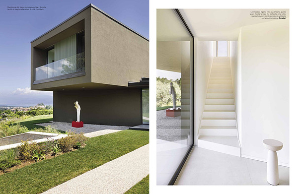 Luminoso ed elgante nella sua linearità questo spazio mostra la scala che porta alla zona notte, realizzata custom con lo stesso grès utilizzato per la pavimentazione( Derada).