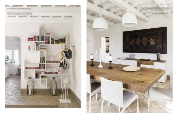 Nella sala da pranzo spicca il tavolo Air in essenza Wildwood naturale firmato Lago, adatto ad ambienti contemporanei e raffinati come quelli di questo casale. Per la consolle รจ stata scelta la Madia 36e8 di Lago in finitura laccata bianco e legno Wildwood naturale. Quadro sopra consolle: insegna su legno con calligrafia dorata Cina XVIII secolo. Lampadari Bell Lamp, Normann Copenhagen, sedie Dangla di Lago, un modello personalizzabile sia nella struttura che nella seduta, grazie a pregiati tessuti intercambiabili.