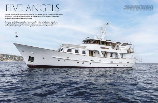 Elegante e maestosa la navetta Five Angels, dopo un meticoloso lavoro di refitting nautico durato parecchi mesi, eccola di nuovo pronta a solcare i mari con l’ eleganza e la solidità che l’ hanno resa celebre sin dal varo nel 1974. Il restauro ha avuto come obiettivo principale quello di conservare lo spirito con cui l’ imbarcazione è stata concepita, mantenendo e rispettando le caratteristiche e il fascino senza tempo dello yacht d’ epoca.