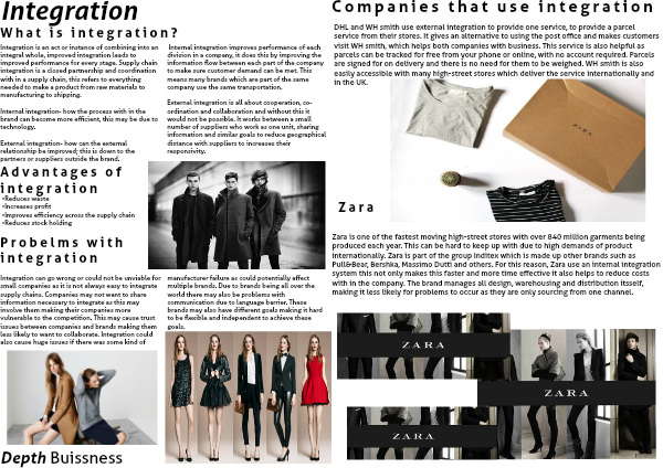 Internal integration improves performance of each division in a company, it does this by improving the information flow between each part of the company to make sure customer demand can be met. This means many brands which are part of the same company use the same transportation.