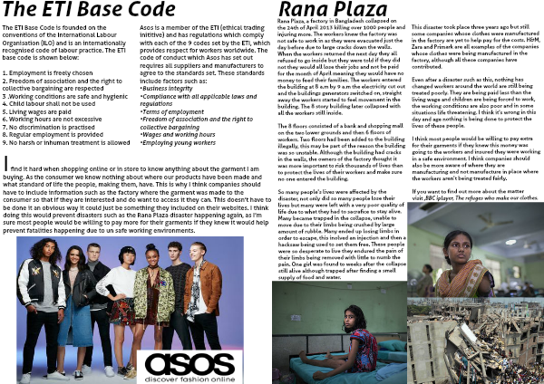 Rana Plaza, a factory in Bangladesh collapsed on the 24th of April 2013 killing over 1000 people and injuring more. The workers knew the factory was not safe to work in as they were evacuated just the day before due to large cracks down the walls. When the workers returned the next day they all refused to go inside but they were told if they did not they would all lose their jobs and not be paid for the month of April meaning they would have no money to feed their families. The workers entered the building at 8 a.m by 9 a.m the electricity cut out and the buildings generators switched on, straight away the workers started to feel movement in the building. The 8 story building later collapsed with all the workers still inside.