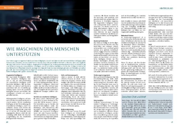 Das Forderungsmanagement wird zunehmend digitaler , da sich mit dem Einsatz von künstlicher Intelligenz viele Prozesse im Customer Service vereinfachen lassen . Doch der persönliche Kontakt zu Kunden darf trotz Digitalisierung nicht auf der Strecke bleiben : Augmented Intelligence im Forderungsmanagement dient als Erweiterung und Unterstützung der menschlichen Intelligenz durch künstliche Intelligenz . Durch die richtige Kombination von Mensch und Maschine können analoge und digitale Kommunikationswege genutzt und Kunden zur richtigen Zeit über den richtigen Kanal abgeholt werden . Aber auch in anderen Bereichen des Inkassos ist die erweiterte Intelligenz eine große Unterstützung .