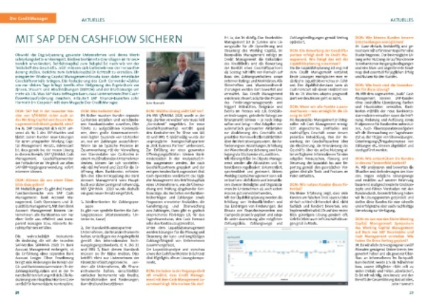 DCM : Wenn wir alle Punkte zusammenfassen – was ermöglicht die Lösung im SAP ? JH : Receivables Management in Integration mit Cash Management ermöglicht abgesichertes , profitables und nachhaltiges Geschäft sowie dessen proaktive Entwicklung . Von der Bewertung der Geschäftspartner über die Absicherung , die Finanzierung des Geschäfts über die aktive Nutzung aller verfügbaren Informationen für eine adaptive Vorausschau , Planung und Steuerung der Liquidität bis zum Reporting gemäß den gesetzlichen Vorgaben sind alle Tools und Features im Paket enthalten .