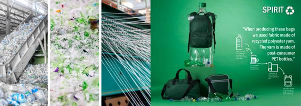 ” When producing these bags we used fabric made of recycled polyester yarn .