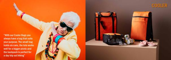 ” With our Cooler Bags you always have a bag that suits your purpose . The small bag holds six cans , the tote works well for a bigger picnic and the backpack is perfect for a day trip out hiking ”