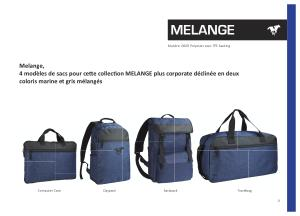 Melange , 4 modèles de sacs pour cette collection MELANGE plus corporate déclinée en deux coloris marine et gris mélangés