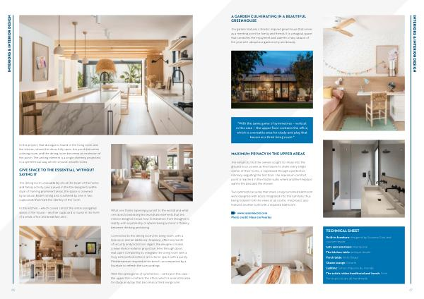 In the kitchen – which covers almost the entire elongated space of the house – another cupboard is found in the form of a small office and breakfast area .