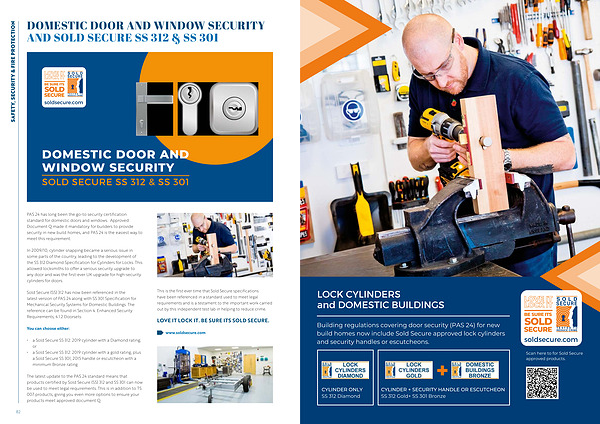 • a Sold Secure SS 312 : 2019 cylinder with a gold rating , plus a Sold Secure SS 301 ; 2015 handle or escutcheon with a minimum Bronze rating .