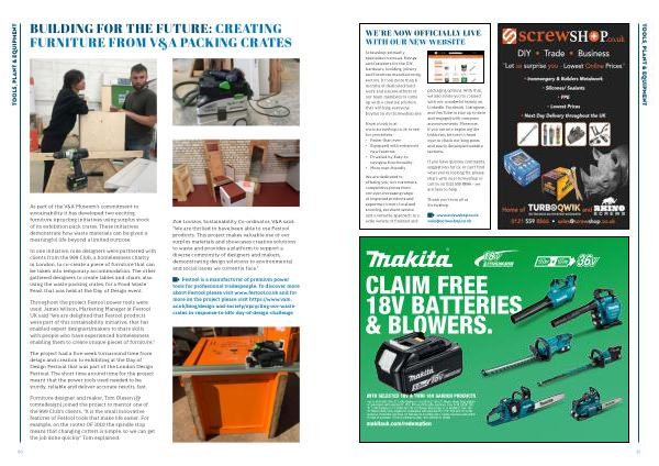 Throughout the project Festool power tools were used . James Wilson , Marketing Manager at Festool UK said “ We are delighted that Festool products were part of this sustainability initiative , that has enabled expert designers / makers to share skills with people who have experienced homelessness enabling them to create unique pieces of furniture .”