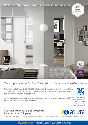 Minimalist and elegant , the ECLISSE Syntesis Flush Collection of pocket door systems , concealed door frames and flush skirting are used worldwide in residential projects and multi-million pound developments .