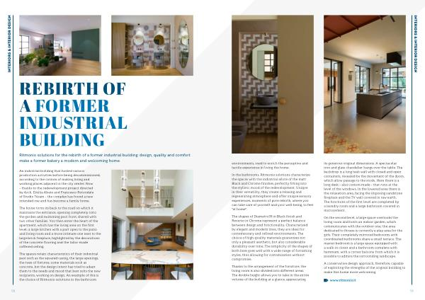 In the bathrooms , Ritmonio solutions characterize the spaces with the industrial allure of the matt Black and Chrome finishes , perfectly fitting into the stylistic mood of the redevelopment . Unique in their versatility , they create a relaxing and regenerating atmosphere and offer unique sensory experiences , moments of pure rebirth , where you can take care of yourself and your well-being , to feel " at home ".