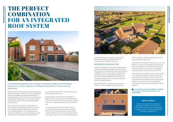 Bringing together the aesthetic appeal , heritage and robust performance of Marley ’ s Lincoln Clay Pantile , with the renewable technology advantages of its integrated Marley SolarTile ® solution , has delivered a striking detached house , which will also provide the property owners with sustainability benefits into the future .