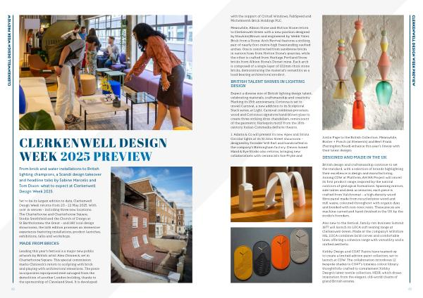 J. Adams & Co will present its new Apex and Strata Circular lights at its St John Street showroom – designed by founder Will Earl and handcrafted in the company’ s Birmingham factory. Devon-based Hand & Eye Studio also returns, bringing new collaborations with ceramicists Sue Pryke and