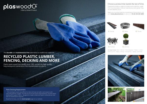 Plaswood provides a range of products and solutions, made from recycled plastic, that are maintenance and splinter free, rot and weather proof.
