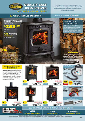 Machine Mart has been supplying top quality, cast iron wood burning & multi fuel stoves for over 30 years. With a vast range of stoves in stock, suitable for use in houses, workshops, garages, boats, pubs, restaurants and more.