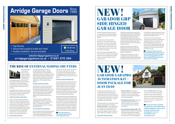 Garador has just launched its all-inone GaraPro automation solution, combining the renowned reliability of Carlton and Horizon up-and-over doors with the new GaraPro electric operator and framed retractable gear— all for just £ 949 + VAT, fully fitted.