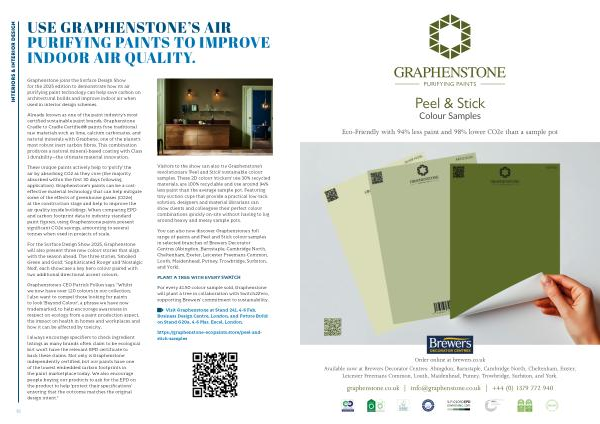 Graphenstone joins the Surface Design Show for the 2025 edition to demonstrate how its air purifying paint technology can help save carbon on architectural builds and improve indoor air when used in interior design schemes.