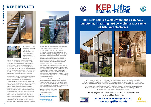 KEP Lifts Ltd is a well-established company supplying, installing and servicing a vast range of lifts and platforms