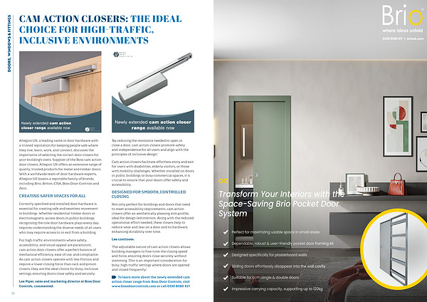 Allegion UK, a leading name in door hardware with a trusted reputation for keeping people safe where they live, learn, work, and connect, discusses the importance of selecting the correct door closers for your building ' s users. Supplier of the Boss cam action door closers, Allegion UK offers an extensive range of quality, trusted products for metal and timber doors. With a worldwide team of door hardware experts, Allegion UK boasts a reputable family of brands, including Brio, Briton, CISA, Boss Door Controls and Zero.