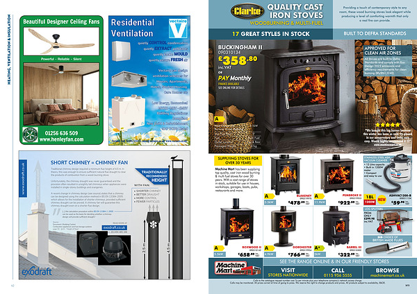 A recent change in chimney design( see source) states that a chimney can be designed using the calculation method in BS EN 13384-2005 which allows for the installation of shorter chimneys, provided sufficient chimney draught can be proved. A chimney fan will guarantee this chimney draught even on a shorter flue design.