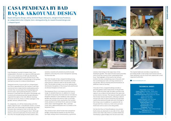 Project Name: Casa Pendenza Project Location: Mamurbaba – Çeşme / İzmir Design Office: BAD – Başak Akkoyunlu Design Architectural Project Team: Başak Akkoyunlu, Mustafa Kabakçı, Damla Erdoğan Client: Serdar Yaşa İnşaat General Contractor: Serdar Yaşa İnşaat Structural Project: Kemal Özkan Mechanical Project: PF Proje Electrical Project: Meyap Plumbing Project: PF Proje Photography: Ozan Çelik Architectural Supervision: BAD – Başak Akkoyunlu Design Land Area: 800 sqm Total Construction Area: 300 sqm