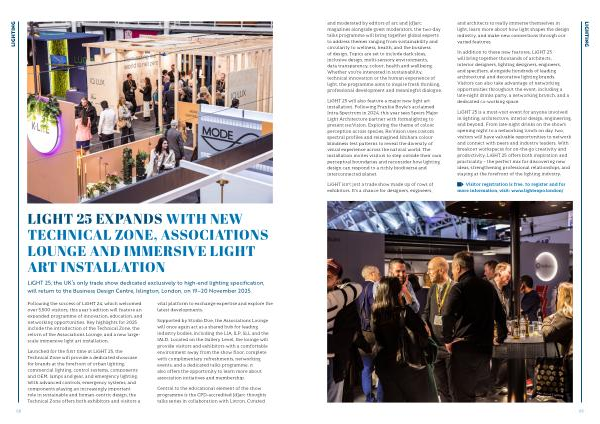 In addition to these new features, LiGHT 25 will bring together thousands of architects, interior designers, lighting designers, engineers, and specifiers, alongside hundreds of leading architectural and decorative lighting brands. Visitors can also take advantage of networking opportunities throughout the event, including a late-night drinks party, a networking brunch, and a dedicated co-working space.