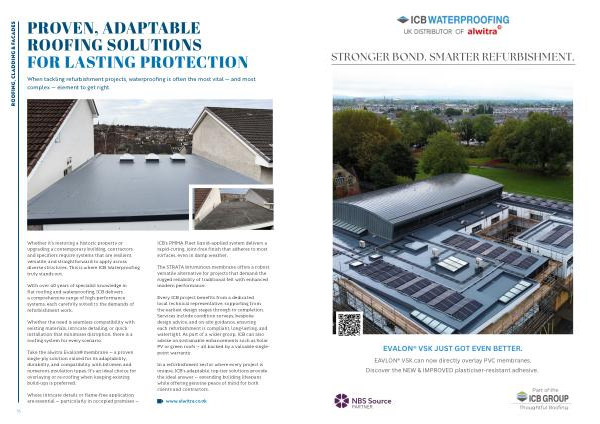 Every ICB project benefits from a dedicated local technical representative, supporting from the earliest design stages through to completion. Services include condition surveys, bespoke design advice, and on-site guidance, ensuring each refurbishment is compliant, long-lasting, and watertight. As part of a wider group, ICB can also advise on sustainable enhancements such as Solar PV or green roofs— all backed by a valuable singlepoint warranty.