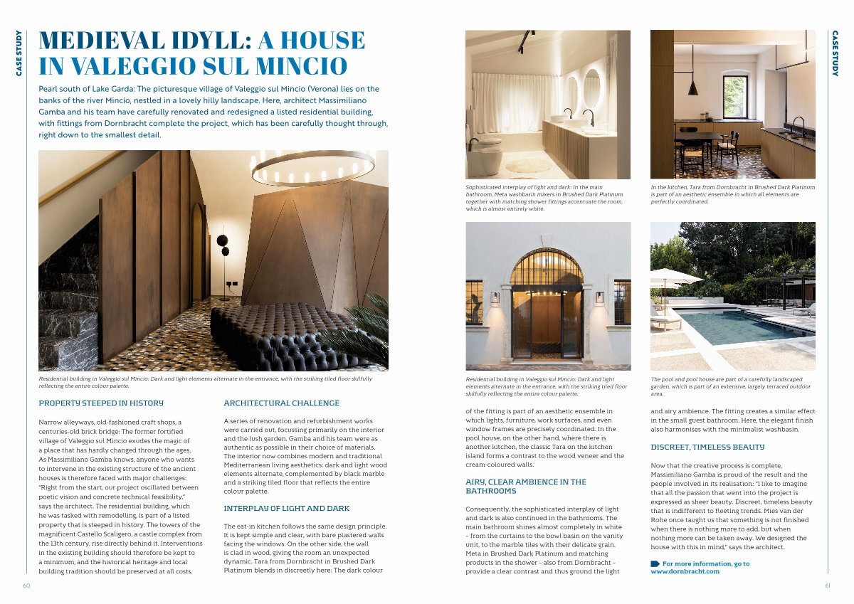 Now that the creative process is complete, Massimiliano Gamba is proud of the result and the people involved in its realisation:“ I like to imagine that all the passion that went into the project is expressed as sheer beauty. Discreet, timeless beauty that is indifferent to fleeting trends. Mies van der Rohe once taught us that something is not finished