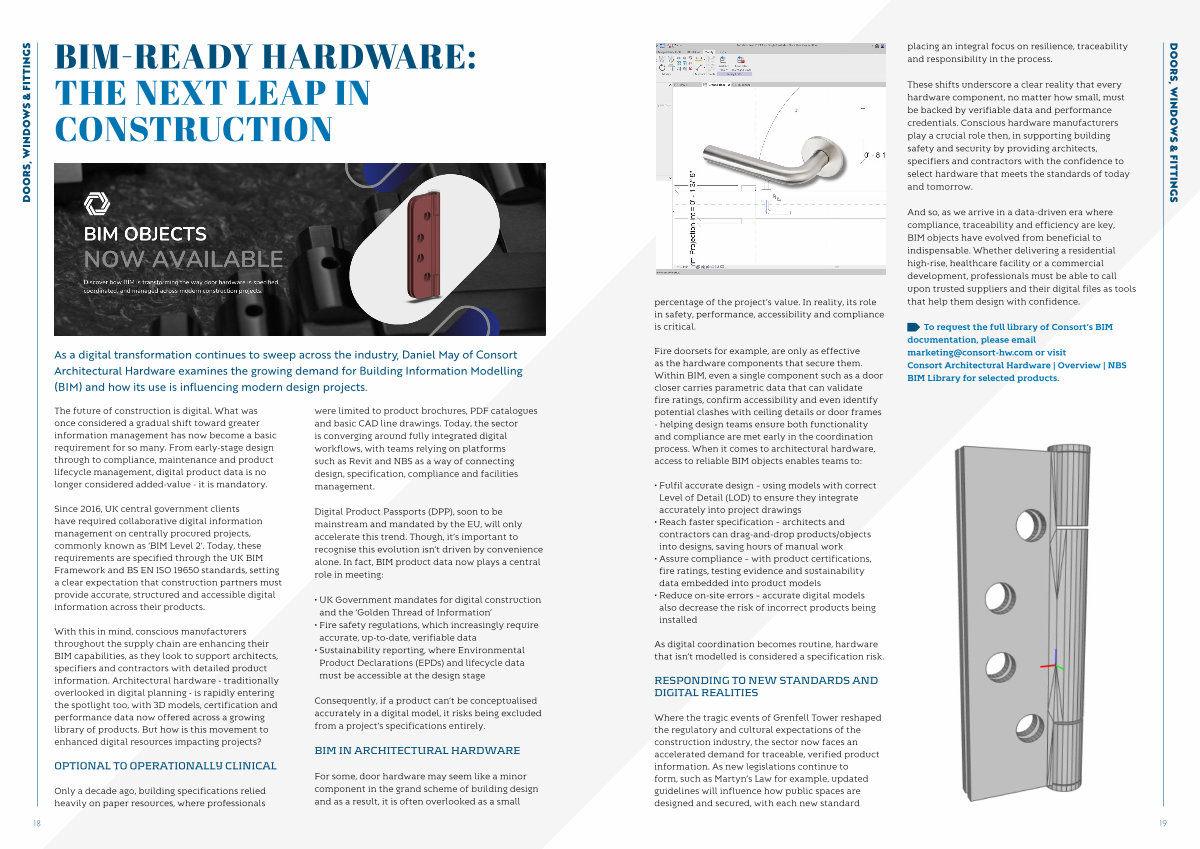 As a digital transformation continues to sweep across the industry, Daniel May of Consort Architectural Hardware examines the growing demand for Building Information Modelling( BIM) and how its use is influencing modern design projects.