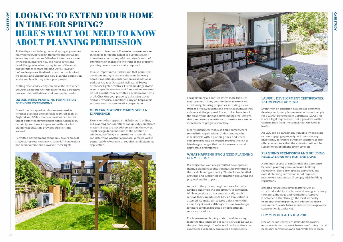 As the days start to lengthen and spring approaches, many homeowners begin thinking seriously about extending their homes. Whether it’ s to create more living space, improve how the house functions, or add long-term value, spring is one of the most popular times to start building work. However, before designs are finalised or contractors booked, it’ s essential to understand how planning permission works and how it may affect your project.