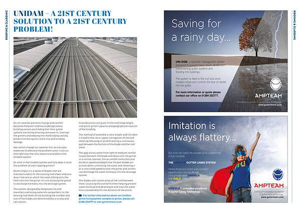 For further information about our Unidam gutter lining system, samples or prices, please call 01384 252777 or visit gutterliners. co. uk