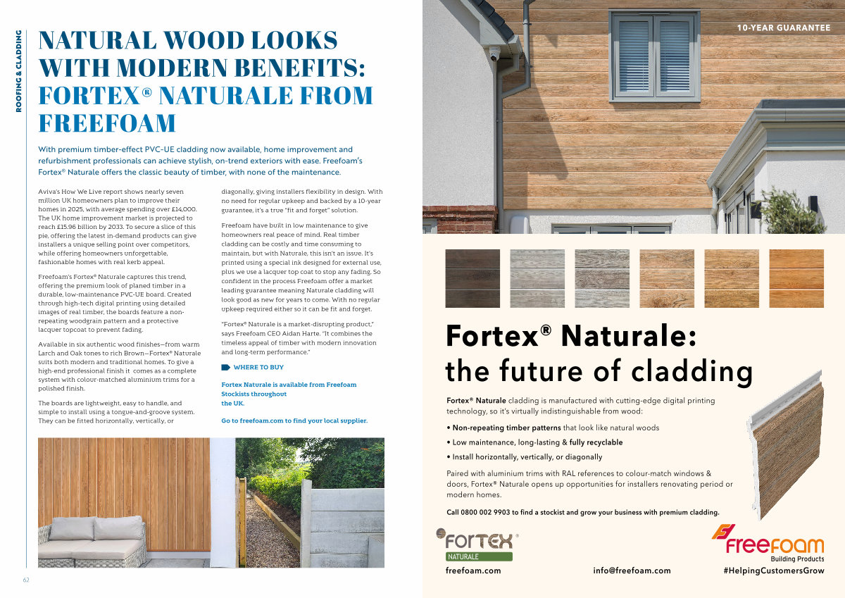 With premium timber-effect PVC-UE cladding now available, home improvement and refurbishment professionals can achieve stylish, on-trend exteriors with ease. Freefoam’ s Fortex ® Naturale offers the classic beauty of timber, with none of the maintenance.