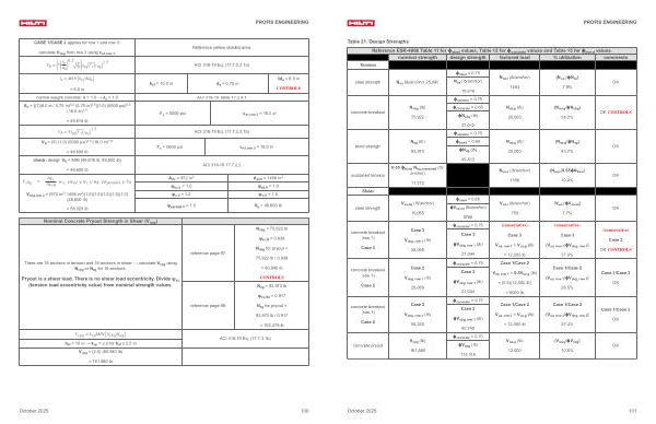 Reference ESR-4868 Table 11 for ϕ steel values, Table 12 for ϕ concrete values and Table 15 for ϕ bond values. nominal strength design strength factored load % utilization comments