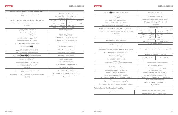 Reference ESR-4868 Table 15 for α N, seis. normal weight concrete: λ = 1.0 → λ a = 1.0 ACI 318-19 Table 17.2.4.1 design τ k, cr =( ESR τ k, cr)( f ' c / 2500 psi) 0. 1 =( 1260 psi)( 3500 psi / 2500 psi) 0. 1 = 1303 psi